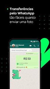 · Transferências no Whatsapp pra você enviar e receber valores de qualquer banco sem sair do seu chat.