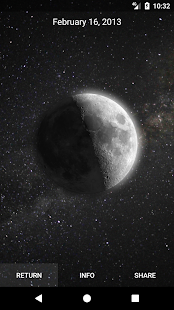 * Share what the moon looks like on any date to Facebook, Twitter, Tumblr, etc.