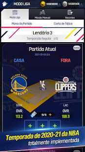 Um jogo de simulação que adota o cronograma da temporada 20202021 da NBA com 30 equipes e estádios da Liga NBA.