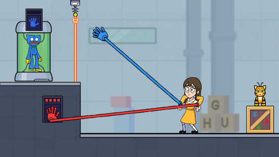 At the beginning of the chapter, Huggy is seen contained within a glass case. Huggy Wuggy just needs your hug. He is not a monster. Try to give him your warm hand and bring him alive.