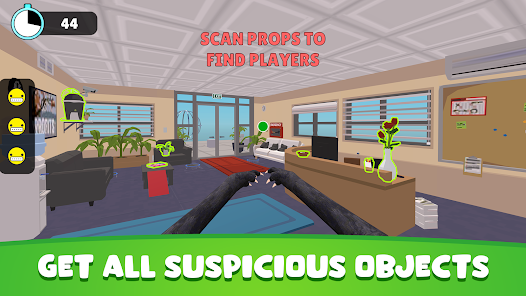 Você vai jogar como um grupo de amigos que são pequenos e ficam em uma área grande com muitas coisas, com a capacidade de se transformar em itens e a missão de se esconder e escapar da perseguição do gigante laranja.